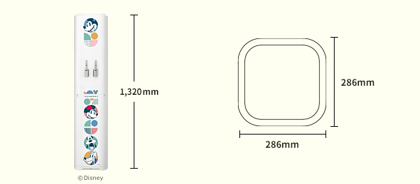 | 外形寸法 | (幅)286mm (奥)350mm (高)1,320mm ※奥行きはフォーセットを含めた寸法です。 |